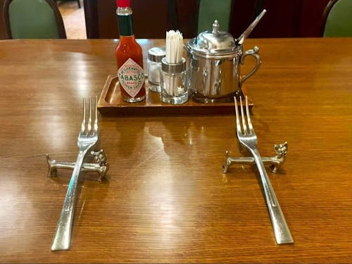 アーリオを訪れると、落ち着いた照明の下で、バロック音楽が迎えてくれる。食事を注文すると、まず出てくるのが猫をモチーフにした銀色のフォーク置きと先端が外向けに少し開いた独特のフォーク。これを手にしてパスタを口に運んだ人は数えきれないほどいるのだろう。この店の名前とメニューが無くなってしまうのはあまりに寂しい。意欲ある後継者が引き継いでくれることを多くの県民が望んでいる。