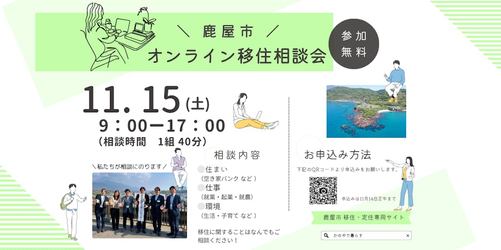 【鹿児島県鹿屋市】聞きたい!知りたい!移住のアレコレ!オンライン移住相談会を開催します