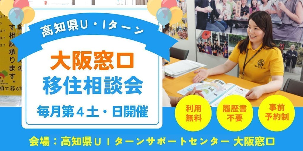 2025/11/07高知県移住コンシェルジュによる「高知県U・Iターン 大阪窓口移住相談会」を、高知県UIターンサポートセンター 大阪窓口にて開催いたします。 仕事のこと、住まいのこと、地域ごとの魅力…高知県移住コンシェルジュがご案内します。 対面でじっくりご相談できるこの機会をぜひご利用ください♪