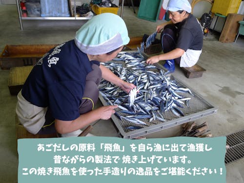 【焼きあご】 昔ながらの製法で、丁寧に炭火で焼き、乾燥させた商品です。新上五島町では古くから親しまれている故郷の特産品です。雑味がなく上品な味わいを楽しめます。