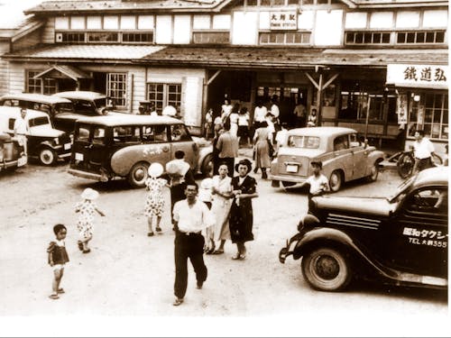 かつては温泉とスキー場の街として栄えた大鰐温泉郷。多くの民宿や旅館が所狭しと立ち並び、観光客向けの商店も賑わいました。鉄道開通時の写真が、当時の街の勢いを物語っています。