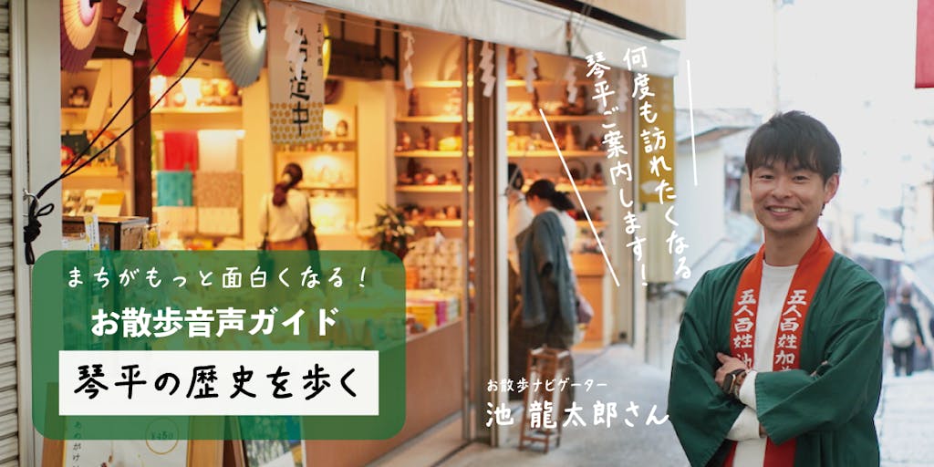 今回ナビゲートしてくださる池商店28代目となる池 龍太郎さんは、「一生に一度ではなく、人生に何度も訪れたくなる琴平にしたい」という思いから琴平の語り部としても活躍されています。 そんな、池さんに琴平町を「観光ではない、一歩深く楽しめる」お散歩コースをナビゲートしてもらいます!
