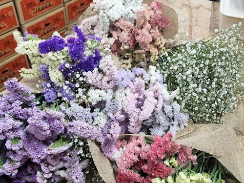 花職人Ikedaでは、スターチスやかすみそうを中心に栽培していますが、体験は、ビニールハウスや倉庫内での作業が基本です。
