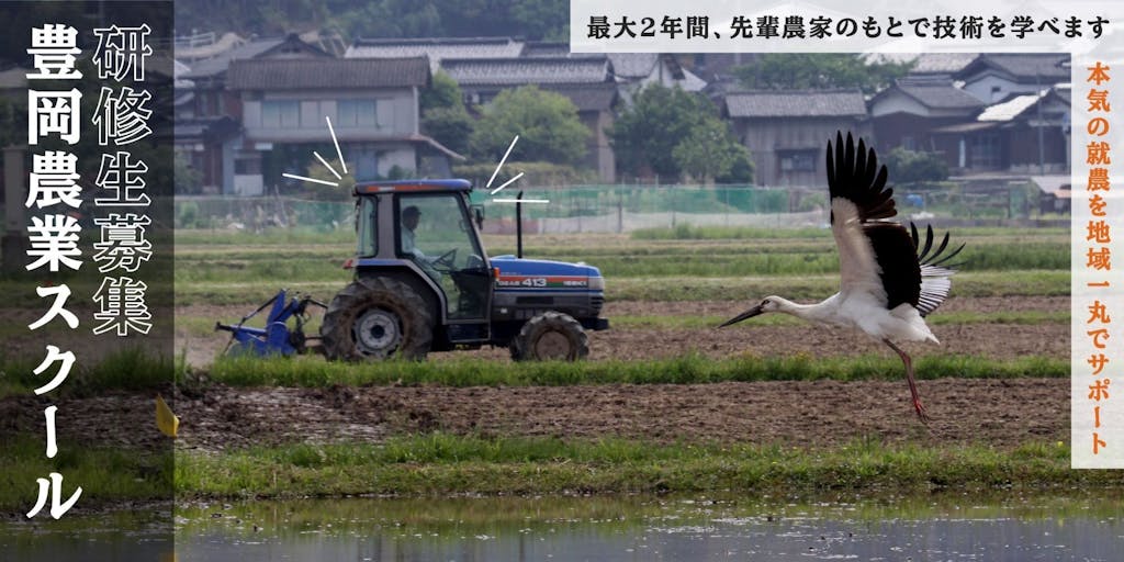 兵庫県豊岡市が開校している「豊岡農業スクール」の2026年度研修生(第14期生)になりませんか? ○年齢要件なし! ○研修期間は1年間 概ね週5日 ○卒業後は、市内で就農する意思のある方 ○月額最大3万円の家賃補助あり <募集ページ> https://www.city.toyooka.lg.jp/sangyo/1021071/1023680/1023754/1023758/1021083/1002235.html