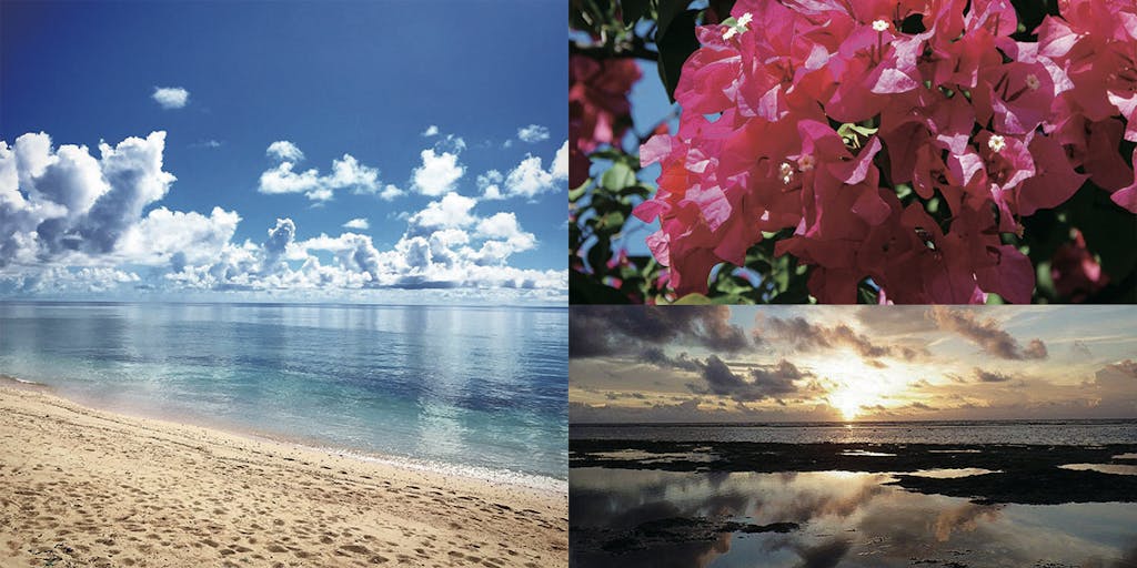 沖縄県で唯一、火山活動で生まれた島の西側ではダイナミックな白亜の絶壁や鍾乳洞。東側では真っ白な砂浜が約1キロも続く南国らしいビーチ、と異なった表情を楽しむことができます。