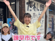①飯盛地域 魅力創出コーディネーター 木山 睦美 隊員(むっちゃん)より 諫早市は行く所々で違う体験が出来ます。3つの海に囲まれているからこその太陽と海の景色、山からの眺望、また歴史に触れる場所。おいしい食べ物、人柄、方言も若干地域によって違います。変化を楽しめる街、それが諫早です。 飽きっぽい方でも良い刺激と楽しさが手に入ります。