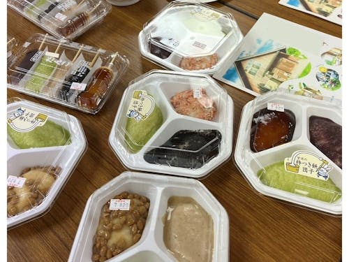 さらに美味しいお米から、美味しいお餅やお団子が作られ、「ずんだ・みたらし・ごま・あずき・くるみ」など5色の味を楽しめる面白さもあります。