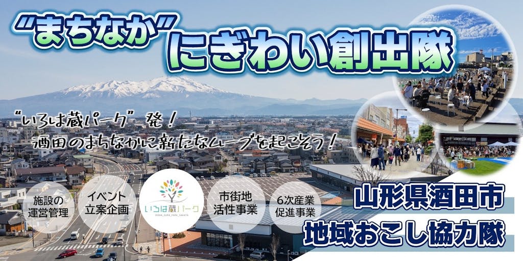 ①中心市街地のまちづくり、主に「エリアマネジメント活動」の推進・支援 ②いろは蔵パーク内、及び山居倉庫周辺エリアにおける回遊性向上に向けた活性化事業の企画・運営
