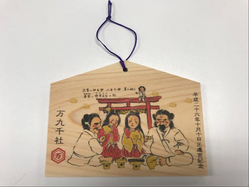 ※新型コロナウイルスの感染拡大状況により、プログラム内容を変更する場合があります。詳細は「くらしまねっと」にてお知らせします。 ★限定30名の方に「絵馬プラン(有料)」をご用意しました! ※もちろん、無料参加の通常プランもあります!※ 「絵馬プラン(希望される方、先着30名)」 料金:1,500円(絵馬お初穂料+往復送料込) 11月21日のイベントへのご参加に加えて・・・ ① 万九千神社の絵馬(下部写真)が、事前にご自宅に届きます ② お願いごとを書いていただき、同封の返送用封筒に入れ、ポストへ投函し 定住財団までご返送ください(返送〆切:11月19日必着) ③ 定住財団職員が、責任をもって万九千神社へ奉納致します ④ 奉納した絵馬のお写真を、後日メールにてお送りします ※②以降は希望者のみ。返送せず、ご自宅にて保管して頂いても構いません。 ぜひ、直接お参りして奉納してくださいね♪