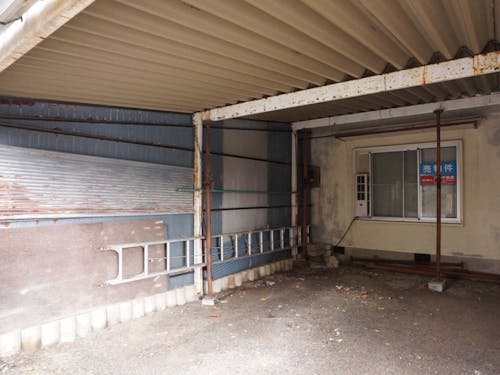 そして、この物件の“もうひとつの主役”が、母屋の一軒隣に建つ「ちいさな離れ」です。 現在は主にガレージとして使われていますが、ただの車庫にしてしまうにはもったいない造り。