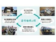 ●資源循環の取組● 2018年からバイオマスセンタールフランが稼働しています。この施設はみやま市内の生ごみとし尿などから、バイオ液肥「みのるん」にリサイクルし、市内の農地に全量還元する取り組みです。リサイクルの過程でメタン発酵発電もしています。これにより、みやま市の焼却ごみは50%削減されました。また市役所の二酸化炭素排出量も半減されました。 2019年環境省グッドライフアワード環境大臣賞 2021年農林水産省ディスカバー農山漁村の宝選定