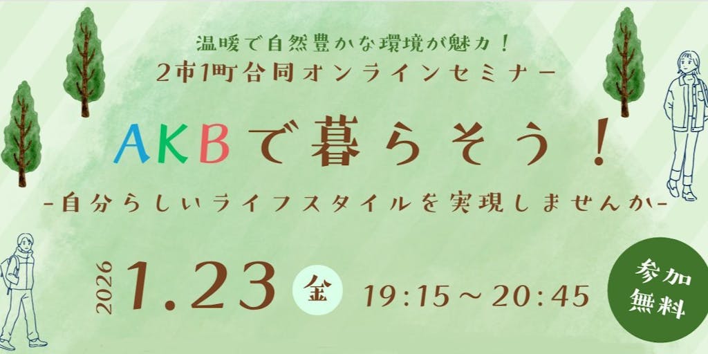 「どんな生活ができるんだろう?」「田舎での暮らしに興味があるけど、利便性も欲しい!」そんな方にぴったりの、気軽に参加できるオンラインセミナーです。 参加無料、全国どこからでも視聴OK。移住後のライフスタイルについて、考えてみませんか?