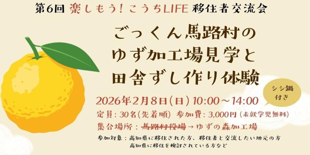 高知県のユズの村で開催!ゆず加工場見学に「田舎寿司」づくり&「シシ鍋ランチ」の移住者交流会