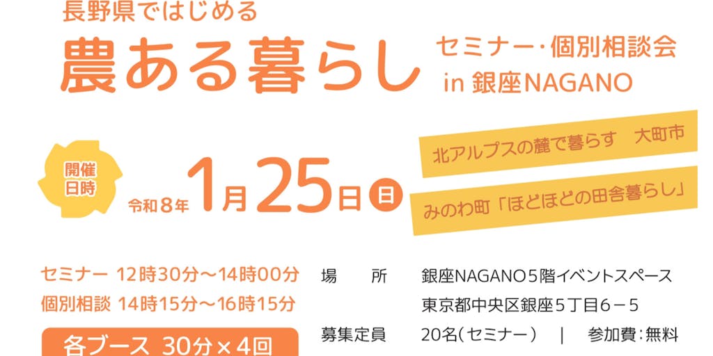長野県ではじめる 農ある暮らしセミナー&個別相談会