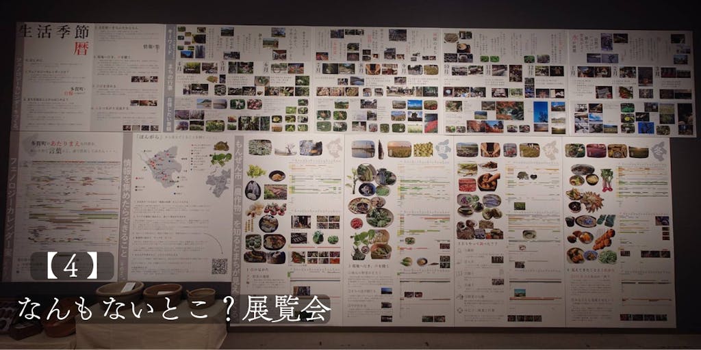 本展では、多賀町まちづくりネットワークが取り組む「フェノロジーカレンダー」の作成過程を紹介しています。フェノロジーカレンダーとは、四季折々の自然の変化や人々の暮らしを記録した生活季節暦で、地域の「旬」を知る大切な道具です。まちおこし・観光・地域学習 など、さまざまな場面で活用できます。