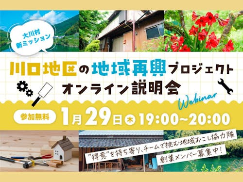 2026/01/131月のオンライン説明会をご案内! どのプロジェクトも、地域の人たちの想いがぎゅっと詰まった取り組みです。 「気になる」「話を聞いてみたい」そんな気持ちが少しでもあれば、ぜひオンライン説明会へ。 移住や協力隊に興味がある方はもちろん、地域づくりに関わってみたい方にもおすすめです。