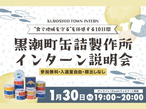 そして今、その挑戦をさらに前へと進めていくために、黒潮町缶詰製作所で活動する地域おこし協力隊を募集しています。 今回は、そんな「黒潮町缶詰製作所」の活動を事前にお試しできるインターンの募集説明会を開催します。