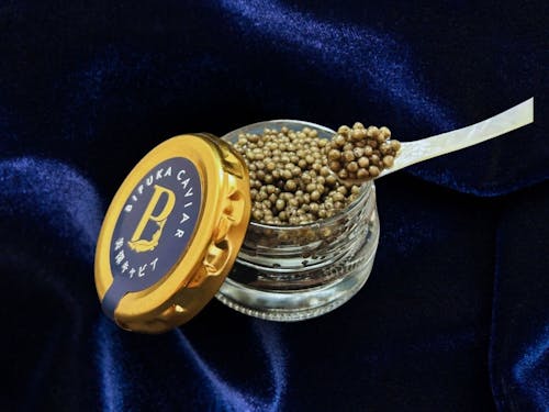 美深町とチョウザメとの関りは昭和58年に飼育試験のため放流したことに始まり、観光資源として成育してきました。 産業化のためチョウザメ飼育養殖を始めて約10年が経過しようとしています。 冬は最深積雪150cmを記録する豪雪地帯での飼育は困難を極めましたが、関係者のたゆまぬ努力と研究により、2020年に5キロのキャビア採取に成功し、製品化を実現しました。 現在は成長したチョウザメの魚肉をさばいて出荷したり、魚卵をキャビアの瓶詰にして販売しています。