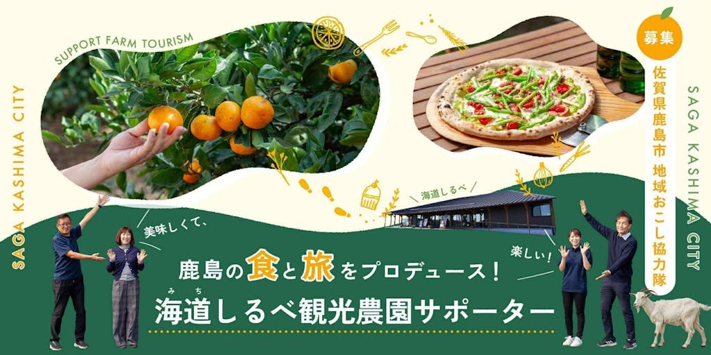 2026/01/19佐賀県鹿島市より、地域おこし協力隊『海道しるべ(※1)観光農園サポーター』を募集いたします。テーマは、食と旅(観光)。豊かな食の宝庫として知られる鹿島市において、6次産業(※2)化の一例となる観光農園をサポートしていくために、