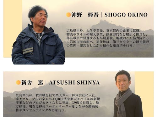 新舎 篤 さん 広島県出身。教育職を経て楽天カード株式会社に入社。楽天グループ内の楽天ペイQR決済や楽天モバイルの新規事業などのプロジェクトなどに参加。39歳で退職し、地方移住。現在は移住コーディネーターをしながら動画制作やコンサルティングなどを行う。