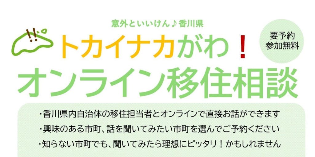 【内容】 18時30分から19時 香川県や各市町の紹介 19時から20時 個別相談&質問タイム