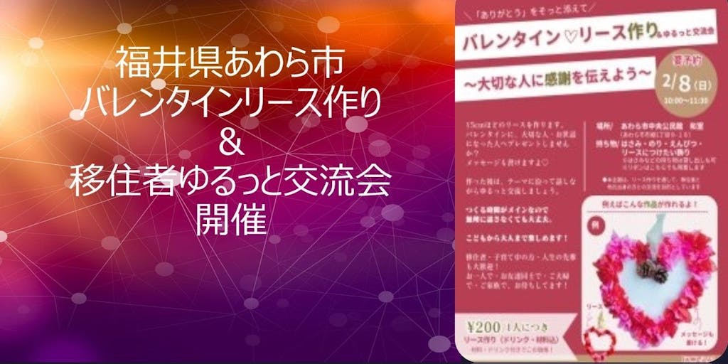 【バレンタインリース作り&移住者ゆるっと交流会】in福井県あわら市開催のお知らせ