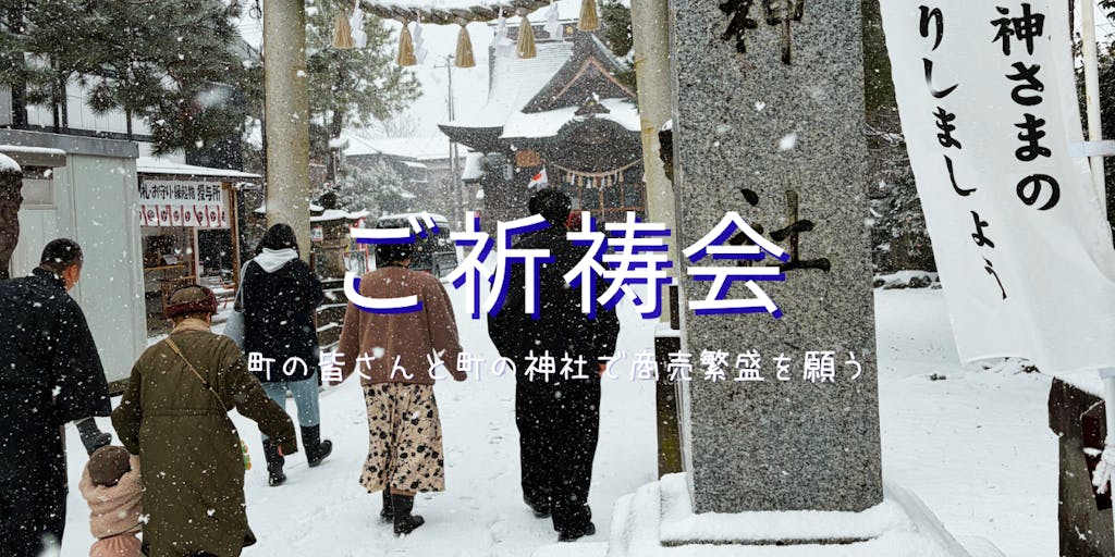 今回は新年ということもあり、町の人と一緒に商売繁盛を祈願してご祈祷会を行いました。雪が降る中でのご祈祷会となりましたが、一人ずつ丁寧にお祓いをしていただき、今年も皆さんと一緒に町を盛り上げていけられたらと思います。