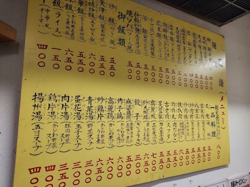 全部です(笑)まあ、鉄扖肉(テッパーヨク⇒宝来特製豚肉ケチャップあんかけ)、炸肉丸(チャーヨクイン⇒肉だんご)、炒飯と餃子あたりはよく出ました。