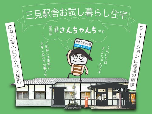 そうして三見駅舎は、大正・昭和・平成・令和と4つの時代を経て、観光目的の宿泊施設とは一線を画す、“お試し暮らし住宅”として生まれ変わりました。愛称は、三見にちなんで「#さんちゃんち」と名付けられ、利用の単位は1週間から1ヶ月と長く、萩の風土や日常生活を暮らすように体験できたり、隣接する駅待合室では地域住民との交流が期待できるのも特長です。
