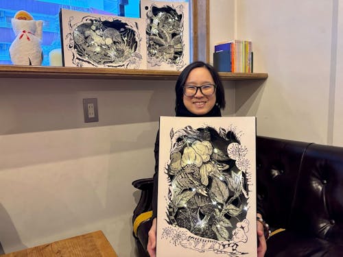ワンさんは、2025年に1ヶ月ほど加賀に滞在しました。 滞在中に、市内で開かれたマーケットに出展、ワークショップを開催し、芸術を通した地域住民との交流を行いました。