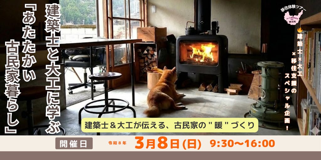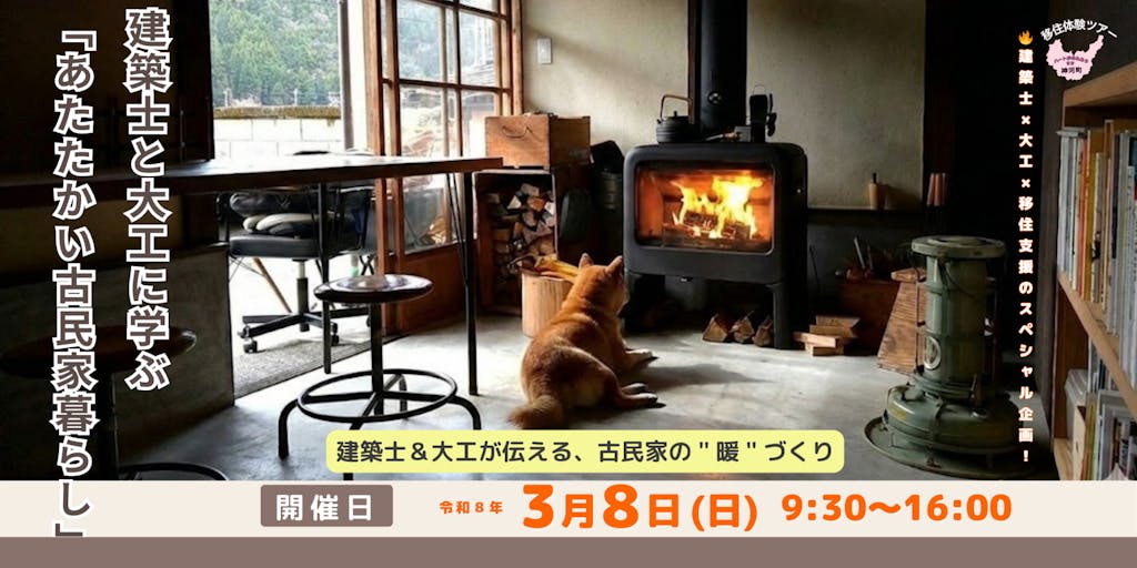 兵庫県のほぼ真ん中、ハートのまち「神河町(かみかわちょう)」で、 建築士と大工、そして移住支援の専門家がタッグを組んだ1日限りのスペシャル体験ツアーを開催します! 実際にリノベーションされたお家で「暖」を体感し、理想の田舎暮らしへの一歩を踏み出しましょう!✨
