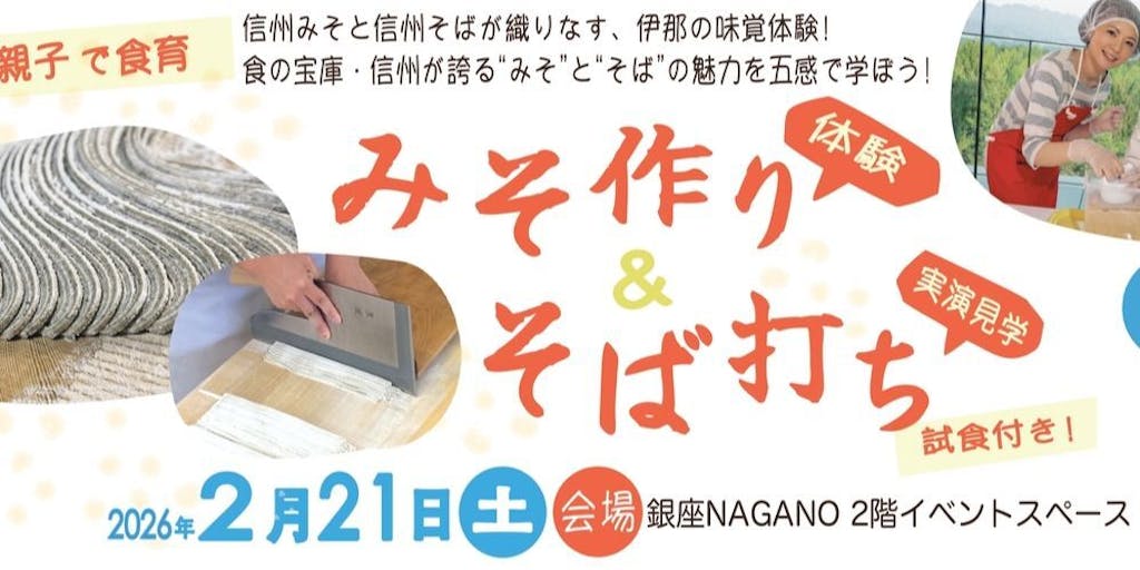 2026/02/04信州みそと信州そばが織りなす、伊那の味覚体験!‼親子みそ作り体験と、大根おろしのしぼり汁に焼き味噌を合わせたつゆで味わう伝統の「高遠そば」の試食をお楽しみいただきます。信州が誇る”みそ”と”そば”の魅力を五感で学んでみませんか!!
