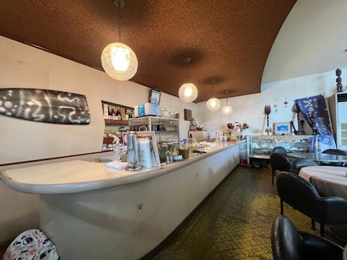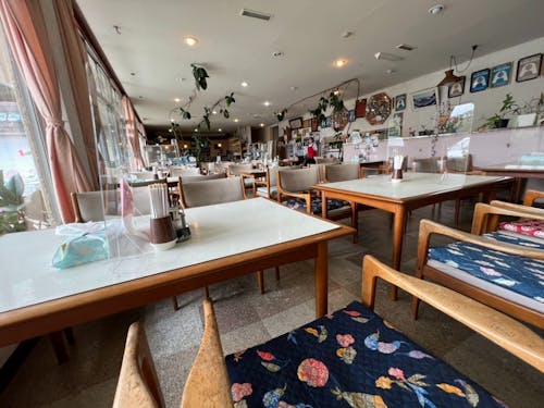 客席は、4人掛けテーブルが12席、座敷に8人ほど。そしてとても魅力的な昭和レトロな喫茶スペースがあります。以前、この喫茶スペースでは宿泊客をもてなすためアルコール飲料も提供しており、小さな町のレトロなスナックとなっていたそうです。 レストハウス店舗に横並びに繋がっているスペースがあり、以前はお土産屋さんとして活用されてきました。近年は若者よるアンテナショップとして電気代だけで貸しスペースとしてレンタルされており、時折大学生や若者のパワーで賑わうことがとても嬉しいと話されいたのが印象的でした。