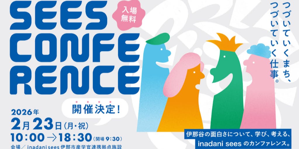 2026/02/04「企てをカタチに」をミッションに掲げる伊那市の〈農と森のインキュベーション施設 inadani sees〉にて開催する1日がかりのトークイベントカンファレンス。 inadani sees がビジネスカンファレンスをやるとしたら...を形にした、ここでしか聞けないトークセッションと、参加者同士もゆるやかに繋がっていける、そんな1日を一緒につくりませんか?