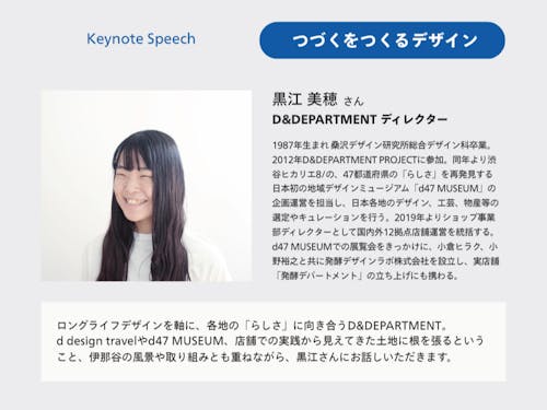 🔍特別講演「つづくをつくるデザイン」 D&DEPARTMENT ディレクター /黒江美穂さん