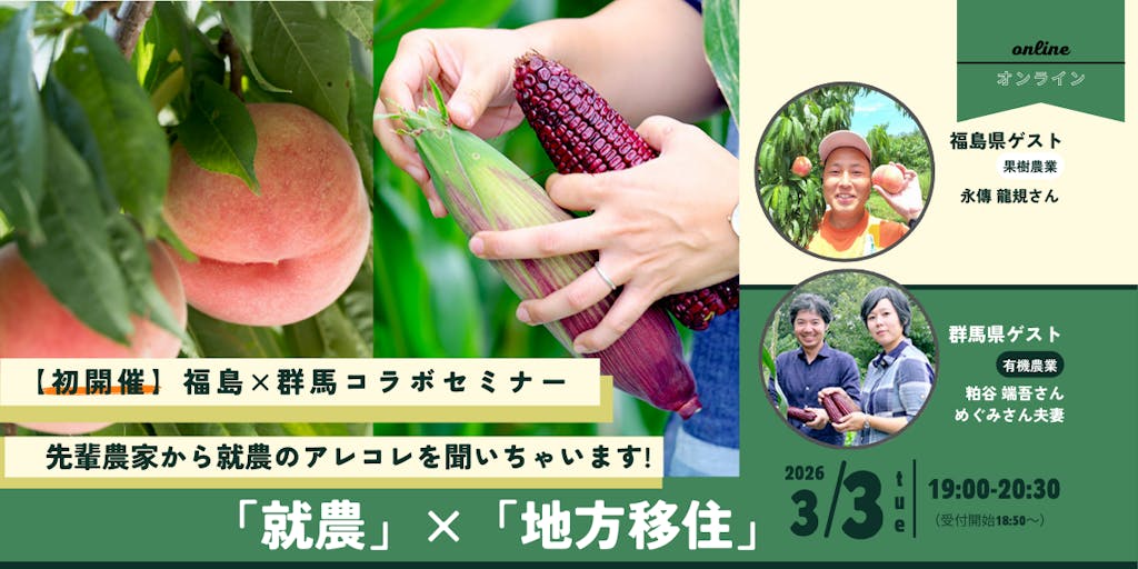 【福島県・群馬県コラボ】 先輩農家から就農のアレコレを聞いちゃいます! 「就農」×「移住」セミナー@オンライン~
