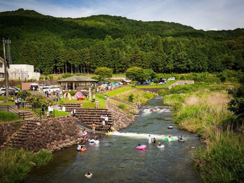 ▶ じゃぶち森のビレッジ 帆柱地区にある町が運営する、自然豊かな山あいのキャンプ場。地域アウトドアコーディネーターの主要な活動拠点です。福岡県森林浴100選に選ばれた森の中のキャンプ場で、標高約400mに位置し、夏でも涼しく過ごしやすい環境が特徴です。施設の管理運営や日々の業務について、実際に現場で働く皆さんから話を聞くことができます。