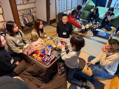 レースゲームに白熱するグループ、卓球で汗を流すグループ、持参したカードゲームで盛り上がるグループ、懐かしのファミコンをやりこむグループなどなど…。初対面の方も多くいましたが、アットホームな空間ですぐに打ち解けることができ、最後はまるで大家族のようでした。 移住者の方が造り上げた空間で、新たな交流が生まれる素晴らしい機会となりました!