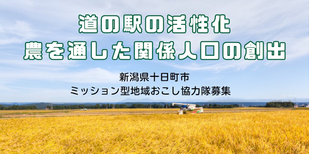 そこで、一般社団法人にいがた圏では、ミッション型地域おこし協力隊として「農」を通した新たな関係人口を創出し、まちと人をつなぐプロジェクトマネージャーを募集しています。 まちづくりを通して、十日町市の農を活性化する方をお待ちしています!
