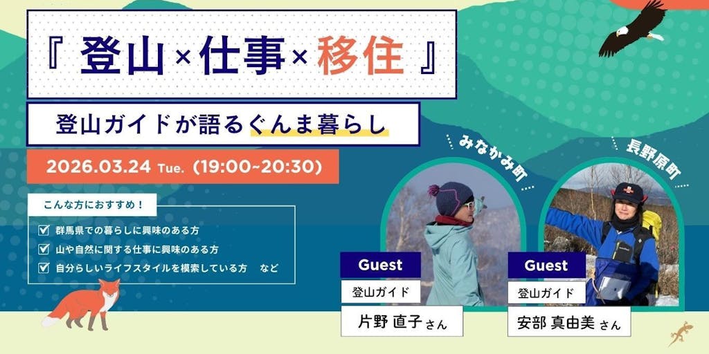 【3月24日(火)19:00~|オンライン開催】「『登山×仕事×移住』 登山ガイドが語るぐんま暮らし」