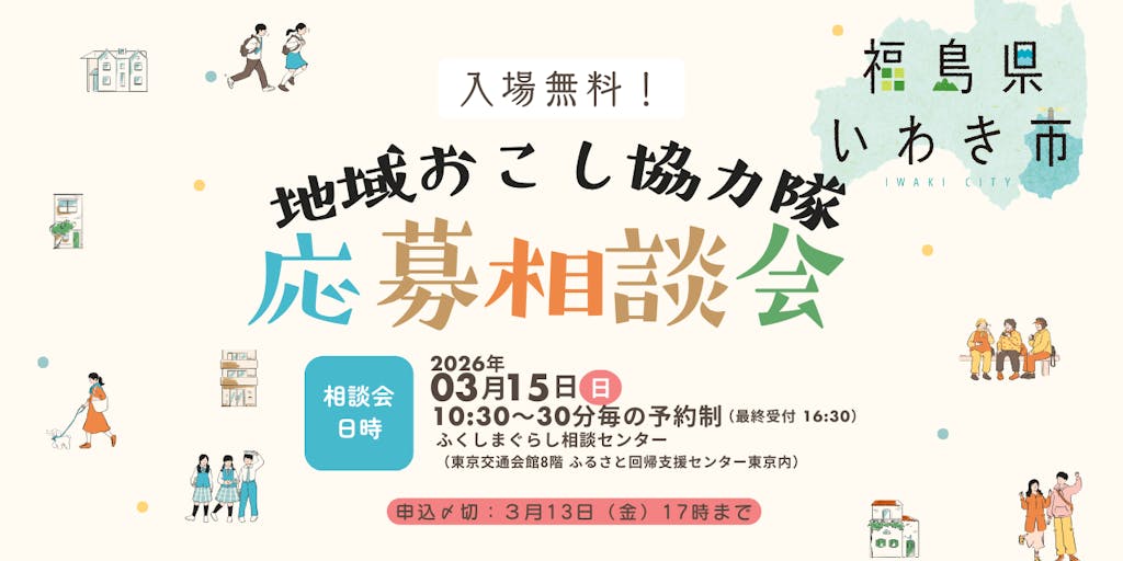 【東京開催】福島県いわき市地域おこし協力隊 応募相談会(どなたでも大歓迎!)