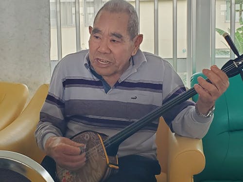 施設の窓からは海が見え、午後になると利用者さんの三線の音色が聞こえてくる。