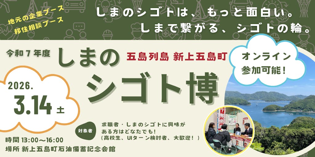 3/14開催!シゴト博のオンライン相談で、新上五島町のリアルな働き方をのぞいてみませんか?
