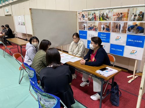 新上五島町の企業が一堂に会するこのイベント。 堅苦しい面接や説明会ではなく、現役で働く先輩たちから、仕事のやりがいや島の暮らしを直接聞けるチャンスで、私服での参加OKです。