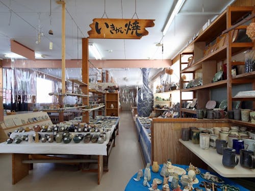 高齢化率の増加が著しい本町においては、約50年前の昭和47年から“高齢者の生きがいづくり”を目的に「いきがい焼き(陶芸通所事業)」がはじまりました。 現在では町内の60歳以上の方を対象に約20名が通われており、高齢者の認知症予防や仲間づくりの場としての役割も担っています。