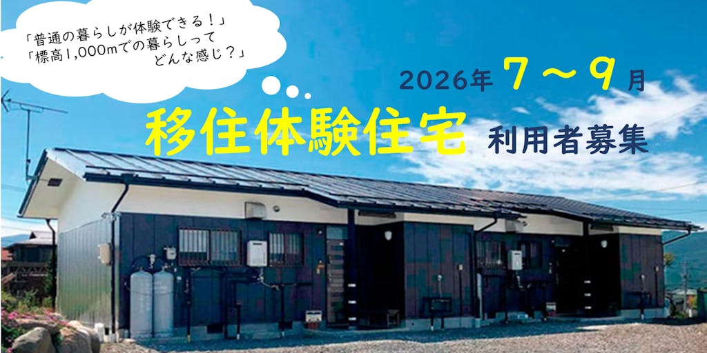 2026/03/03仕事に、住まいに、子育て環境に....生活環境をしっかり、じっくりリサーチできちゃう! 利用期間は、どのように過ごしてもOK!二拠点居住の確認にも! 八ヶ岳のふもとで茅野市での暮らしを体験してみませんか?