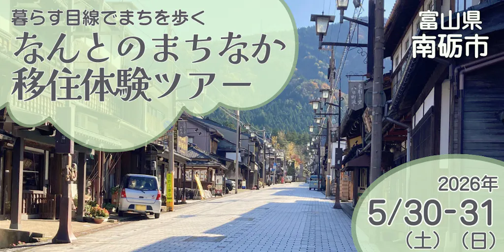富山県南砺市の福野・井波エリアを巡り、 観光とは違う「暮らす目線」で、街なかでの暮らしを体感する1泊2日の移住体験ツアー。