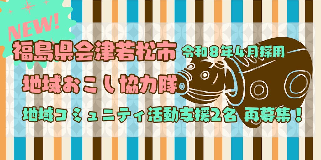 【申し込み方法】 ①このページの「興味ある」または「応募したい」ボタンをクリック ②会津若松市ホームページで詳細を確認し申し込み ※申し込み締切 令和8年7月31日(金)午後5時15分 https://www.city.aizuwakamatsu.fukushima.jp/docs/2016041300014/
