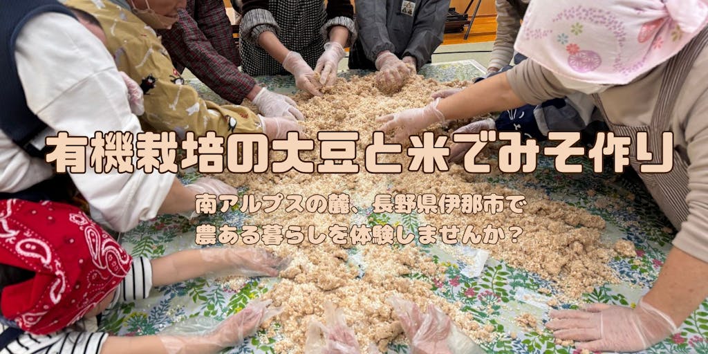 2026/03/18南アルプスの玄関口である長野県伊那市の山あいの地域「長谷」で、毎年恒例の味噌づくりを行います。 有機栽培の大豆と米こうじを使い、みんなで手を動かしながら味噌を仕込みます。