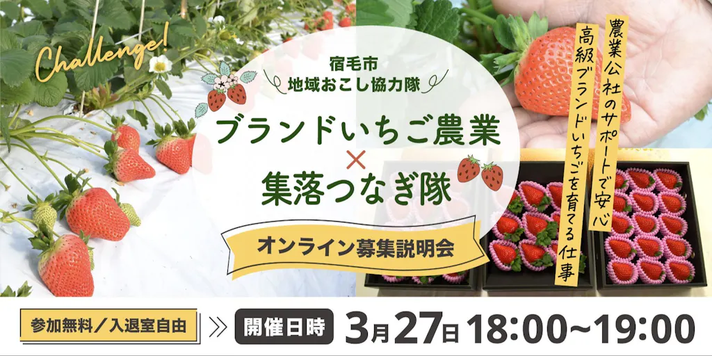 3/27 18:00~ オンライン開催「いちご農業×集落つなぎ隊」地域おこし協力隊説明会